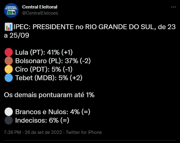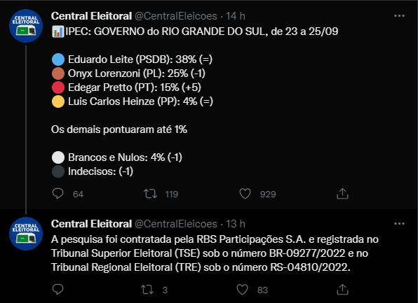 Mas há algo diferente na pesquisa IPEC, que não aparece na Pesquisa publicada pelo Brasil de Fato RS: Eduardo Leite teria 38% pelo IPEC e 29% pela Pesquisa BdF RS. E Luiz Carlos Heinze do PP, que tem metade das Prefeituras do RS, teria somente 4% dos votos. E também há o fato de que nas 2 ultimas eleições para Governador no RS, quem aparecia em 3º nas pesquisas a uma semana da eleição, acabou não só indo ao 2º turno, mas ganhando a Eleição. Foi assim com Sartori e Leite. E o Rio Grande também não reelege Governador. será que agora os gaúchos vão entregar o futuro do Estado nas mãos do maior privateiro da história?