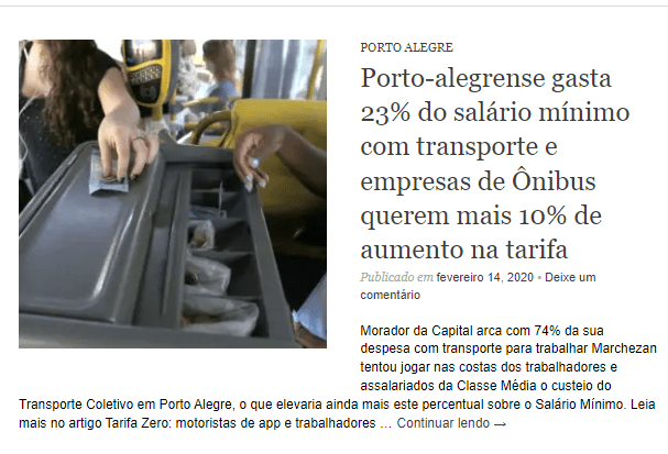 Mais uma mentira. Porto Alegre tem a Passagem mais Cara entre todas as capitais do Brasil e o controle do Transporte esta hoje totalmente nas mãos da ATP -Associação dos Transportadores de Porto Alegre. que ajudou muito a eleição do atual Alcaide Municipal, mas “pensando é claro no bem da cidade” somente.