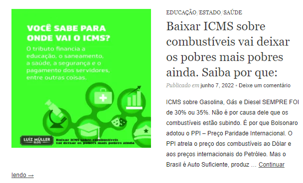 No artigo “Baixar ICMS sobre combustíveis vai deixar os pobres mais pobres ainda. Saiba por que:“, publicado em junho, este Blog mostrou que com Redução do ICMS, Bolsonaro não estava “baixando preço da Gasolina”, mas tirando dinheiro da Educação, Saúde e outras áreas que os Estados investem o Dinheiro dos Impostos, dos quais o ICMS é o maior e mais importante. E como o ICMS também tem importância substancial nos Municípios, também nestes já há menos recursos arrecadados.