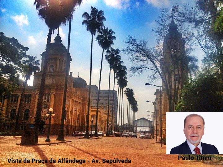 “Mas eu prefiro situar a civitas de Porto Alegre em torno da Praça da Alfândega, seja pela monumentalidade da paisagem que se desdobra até as margens do Rio onde ainda se pode ver de longe a mal conservada arquitetura em ferro dos portões do porto, seja pela intercorrência, ali de grandes acontecimentos históricos que marcariam a transformação do pacato e pobre Porto dos Casais em cabeça do Rio Grande. ” (Extrato do Artigo de Paulo Timm, que publico na íntegra a seguir: