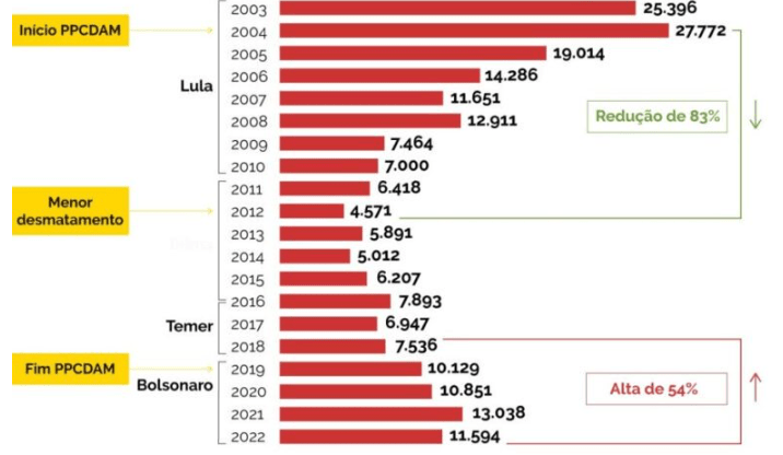 Da origem bem-sucedida com Lula, passando pelos menores índices de desmatamento durante o Governo Dilma e ao abandono por Temer e Bolsonaro