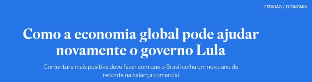 “Uma parte dos bancos e consultorias prevê um superávit acima de US$ 70 bilhões em 2023, o que marcará um recorde se confirmado“, escreve o jornalista Luiz Guilherme Gerbelli, no ‘Estadão‘.