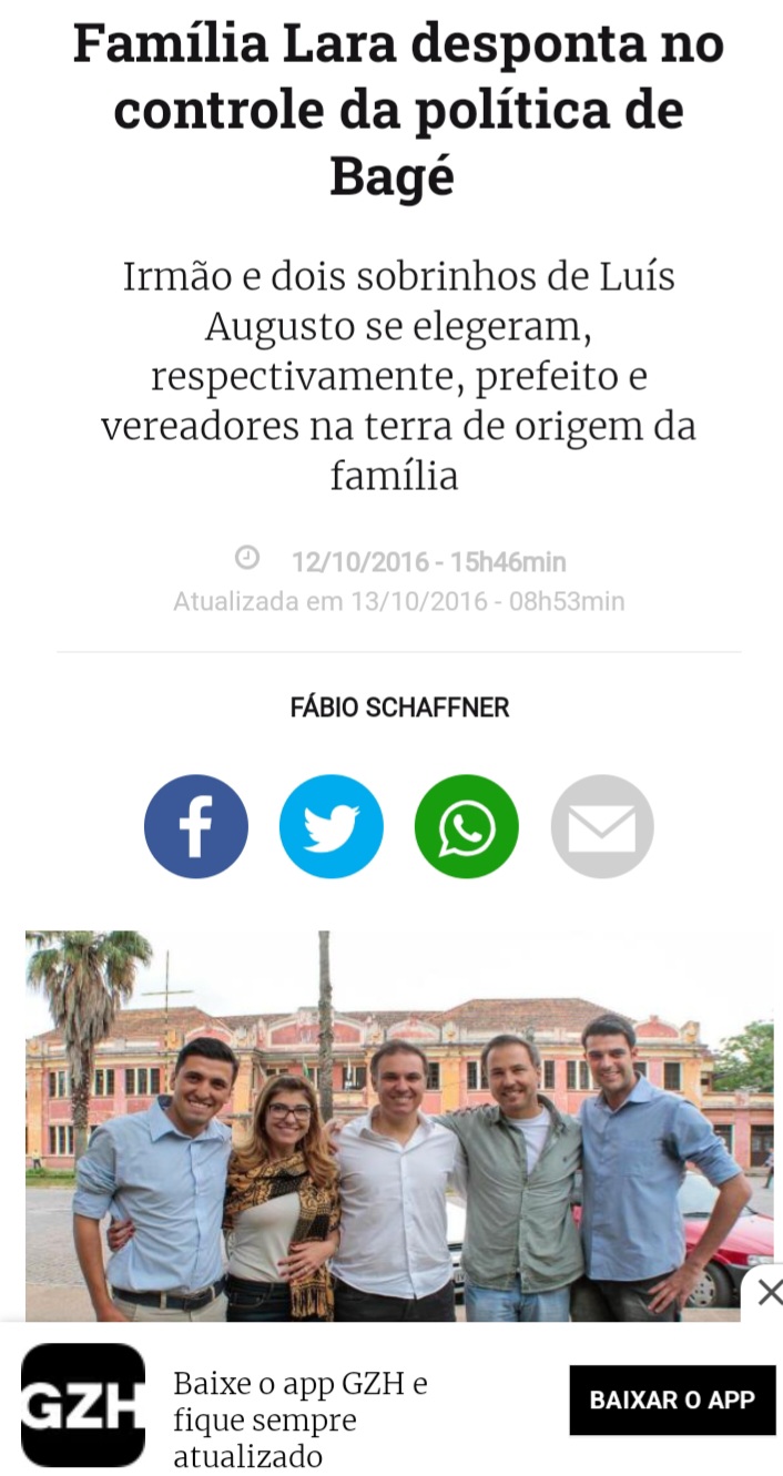 Já quanto a Família Lara, mesmo com baixas, como a cassação do Deputado Luiz Augusto e a Perda de Direitos Politicos do ainda Prefeito de Bagé, Divaldo Lara, parece disposta a expandir sua “dinastia” como chama Zero Hora em matéria, para o Rio Grande inteiro, agora sob as asas do PL de Bolsonaro.