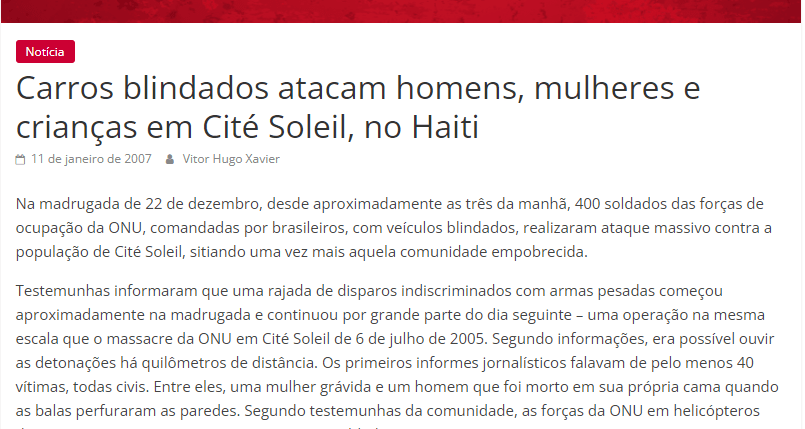 As tropas brasileiras mataram e estupraram muita gente no Haiti sob o pretexto de estarem defendendo “a paz”.