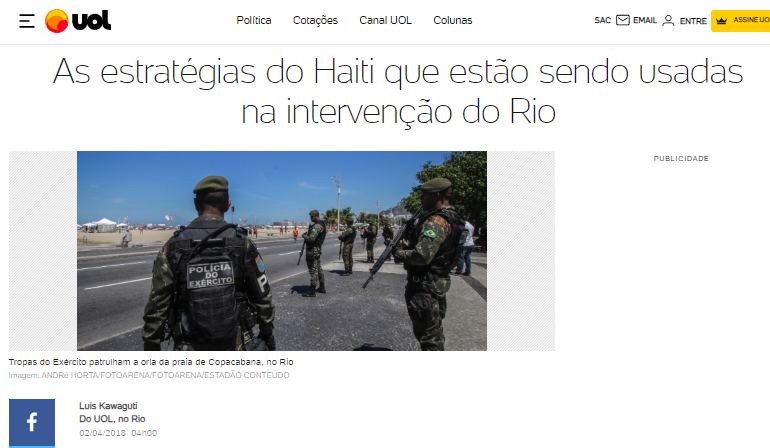 Em 2018 o UOL estampava As Estratégias do Haiti estão sendo usadas na Intervenção no Rio de Janeiro