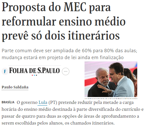 “O indicativo de mudar o Novo Ensino Médio coincide com o Ato Nacional em Defesa da Educação Pública programado para o dia 9 de agosto em Brasília, chamado pela CNTE…), escreve o Professor Alex Sarrat no artigo que reproduzo na íntegra, a seguir: