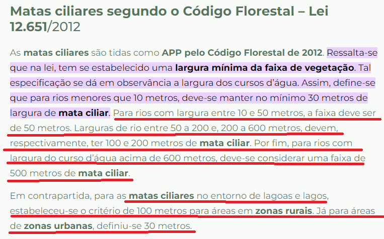 E nem precisa ser um expert pra entender o que diz a Lei. Olha no print a seguir, do Mata Nativa, o que sublinhei: