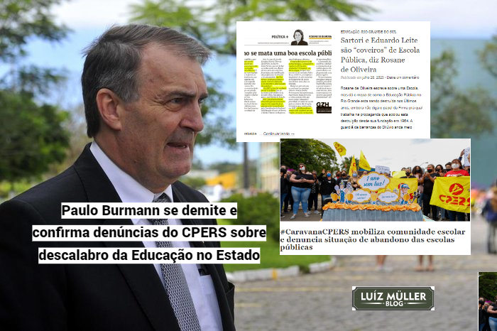 O professor Paulo Burmann, diretor-geral da Secretaria de Educação, pediu demissão do cargo. Em uma carta de 12 itens, explicando as razões da saída, o ex-reitor da Universidade de Santa Maria (UFSM) Precariedade das Escolas, do Transporte Escolar e Falta de Valorização dos Professores e Funcionarios de Escolas como razões para deixar a Secretaria de Educação do neo liberal e privateiro tucano Eduardo Leite.
