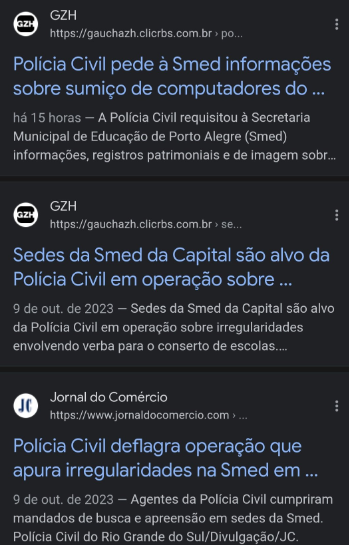 A Polícia Civil requisitou à Secretaria Municipal de Educação de Porto Alegre (Smed) informações, registros patrimoniais e de imagem sobre o sumiço de computadores e equipamentos do Conselho Municipal de Educação (CME). O fato de a sede do órgão, no quarto andar do antigo prédio da Smed na Rua dos Andradas, ter sido encontrado aberto e com itens desaparecidos se tornou público no dia 12 de outubro.O CME tem como atribuições a fiscalização e a normatização das políticas educacionais em Porto Alegre.