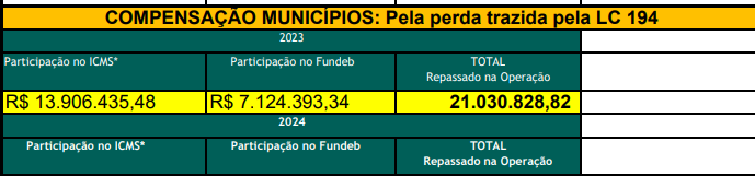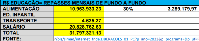 Como é possível ler na Planilha acima, para a Educação foram devolvidos Mais de R$ 7 milhões só agora em 2023 e serão mais outros tantos em 2024 2025.