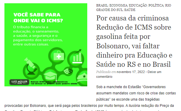 Já imaginou se o Bolsonaro tivesse se reelegido? Porto Alegre não receberia este dinheiro, e pior, deixaria de receber o dobro disto por conta de que Bolsonaro usaria pra falsamente “reduzir” o preço da Gasolina na bomba. Na verdade cortou dinheiro da Educação e outros investimentos de Municípios e Estados, prejudicando todo mundo. E isto também ajuda a gente a lembrar que impostos são importantes pra todos, por que são a forma do município, Estado e União arrecadar para poder investir, e muito, em Educação e outras áreas.