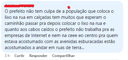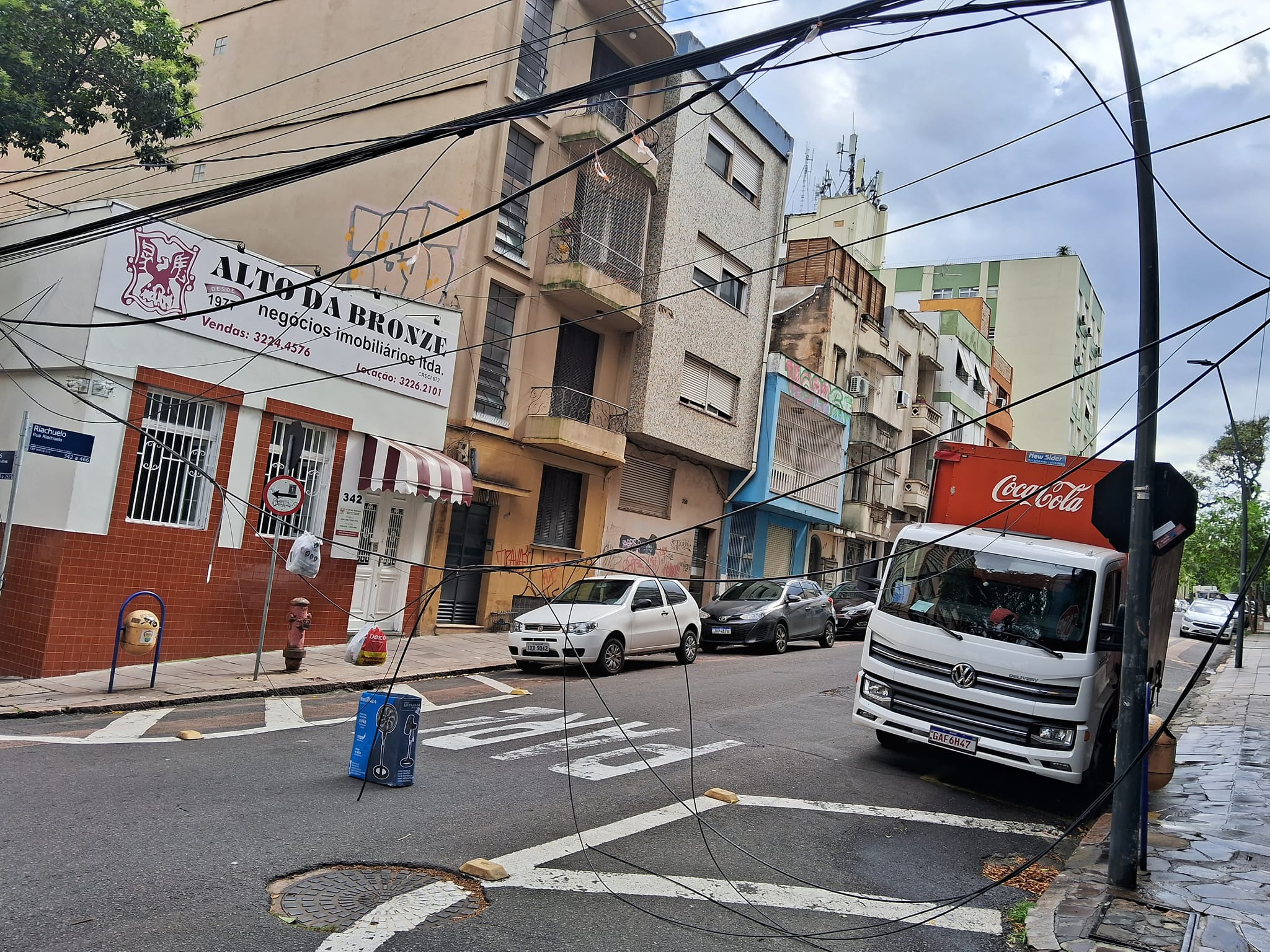 Mas para parcela dos porto alegrenses, a responsabilidade por tudo isto é…das empresas, como escreveram alguns nas redes sociais, diante do escandalosos enroscos de fios e cabos a atravancar até o transito em ruas e calçadas, como é possível ler no print abaixo: