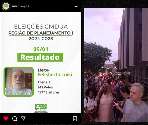 O Conselho Municipal de Desenvolvimento Urbano Ambiental (CMDUA), informalmente conhecido como o Conselho do Plano Diretor, é responsável por formular políticas, planos, programas e projetos de desenvolvimento urbano. A eleição ao Conselho Municipal do Plano Diretor de Porto Alegre (CMDUA) na Região Central, entrou madrugada a dentro e demonstrou a disposição dos cidadãos da Região Central … Continuar lendo Com 60% dos votos, Chapa 1 vence eleição para Conselho do Plano Diretor de Porto Alegre e sinaliza disposição popular de mudar rumos da cidade Continuar lendo →