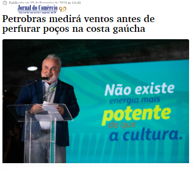E o Sul do Rio Grande esta na Rota destes investimentos, principalmente para a Produção de Energia Eólica em Alto mar, como disse o Presidente da Petrobras, Jean Paul Prates, como informa o JORNAL DO COMÉRCIO em matéria que reproduzo na íntegra a Seguir: