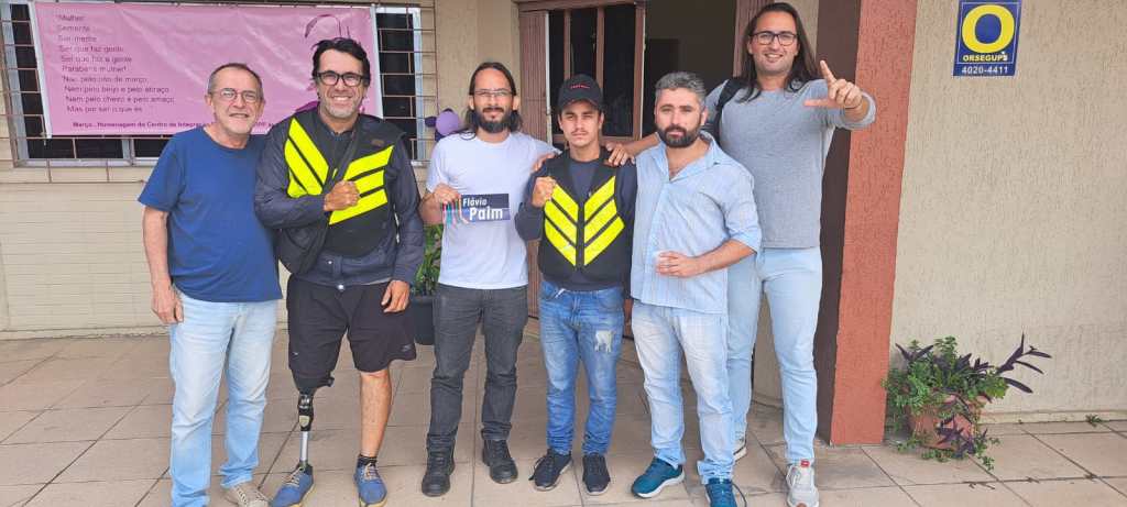 Ainda exultantes pelo inédito acordo assinado pelo SindiMoto com o Ifood, que beneficia milhares de motoboys e entregadores( (clique no link para matéria sobre o tema) em Porto Alegre e no RS, representantes dos motoboys conversaram com Flavio Paim no Centro Integrado Paulo Paim em Canoas.