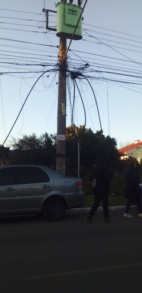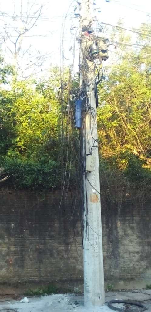 Este amontoado de fios e de conectores nos postes deixa a aparência da cidade e a frente de nossas casas horrível e as vezes da vontade de ir lá e arrancar.