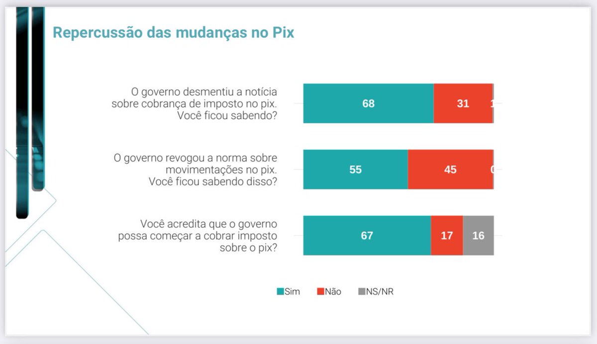 8/ O problema real é que a população entrou e saiu desconfiada do governo. Embora 68% tenham ficado sabendo que o governo desmentiu que haveria taxação, mesmo que 55% tenham ficado sabendo que a norma foi revogada, ainda assim 67% acreditam que o governo vai cobrar imposto sobre o PIX.