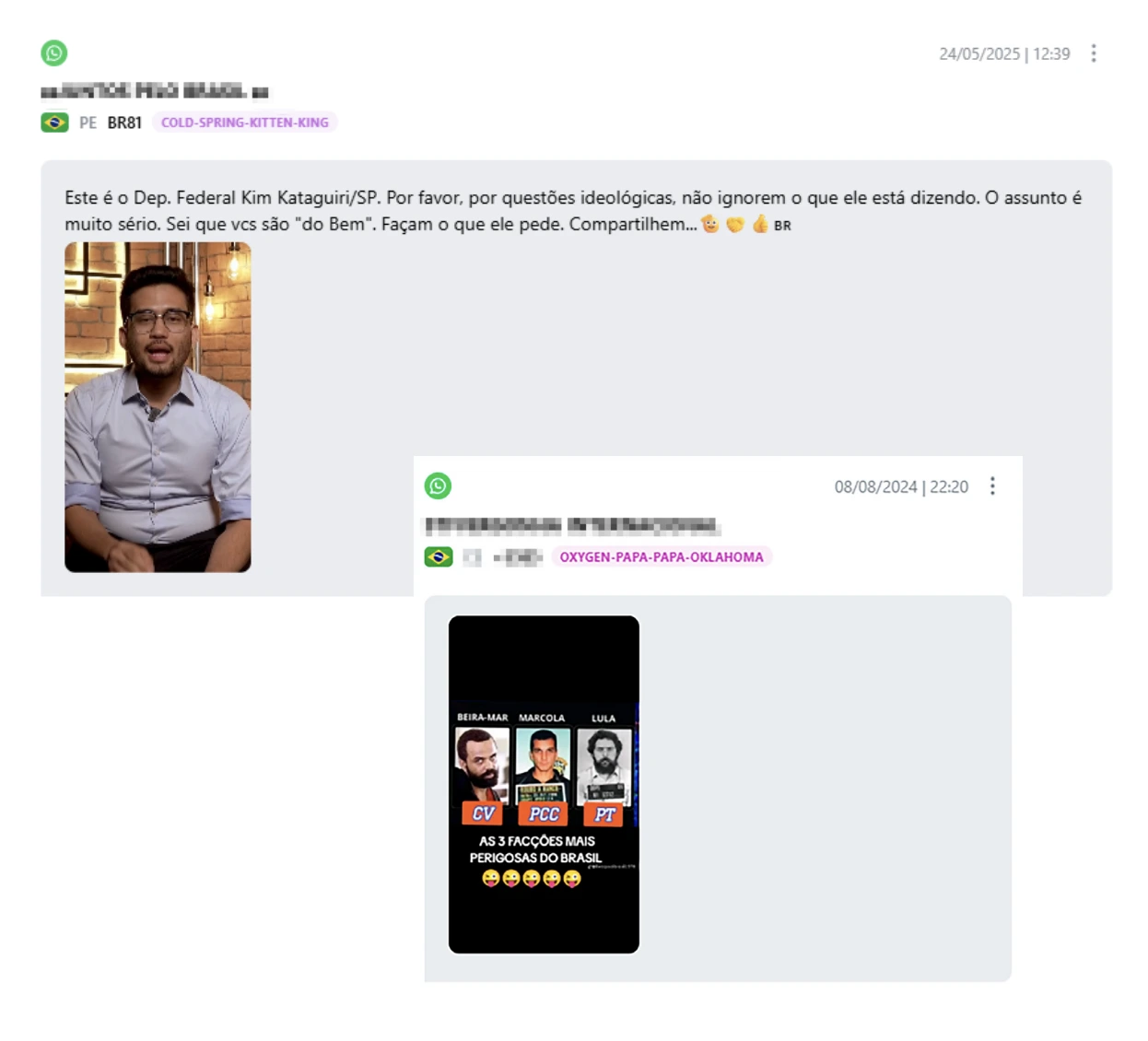 O levantamento mostra que a política não é apenas o tema mais recorrente entre as mensagens super virais, mas também o campo onde as narrativas se apresentam de forma mais agressiva e coordenada. Na amostra analisada, os grupos foram “indicando uma infraestrutura de disseminação mais robusta e ativa nesse espectro ideológico”, destaca o estudo.