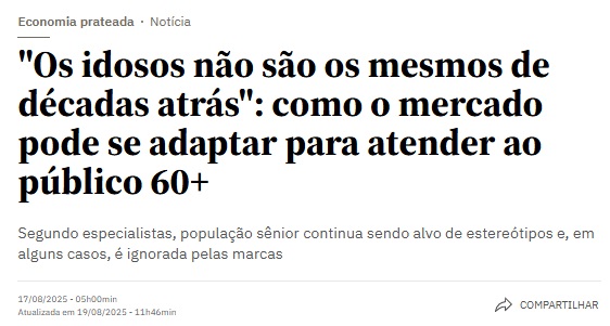 Então, pode esperar, que cada vez mais teremos matérias da grande mídia venal enaltecendo aqueles. que embora já bem idosos, voltam ao trabalho ou nem deixam de trabalhar…até os 100 anos.