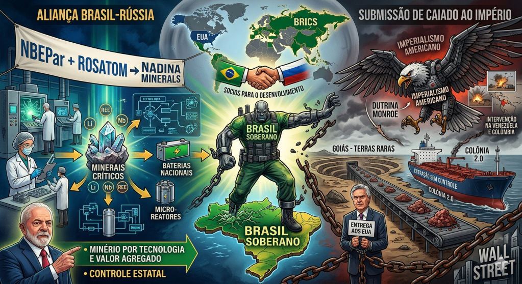 No cenário de uma América Latina sob cerco — com a invasão da Venezuela, a desestabilização da Colômbia sob o comando de Noboa e o garrote renovado sobre Cuba — o Brasil enfrenta um dilema histórico: ser um mero exportador de terra bruta para o Império ou um senhor de sua própria tecnologia. A recente criação da Nadina Minerals, fruto da parceria entre a estatal russa Rosatom (via Uranium One Group) e a brasileira NBEPar, coloca a disputa pelos minerais críticos no centro do tabuleiro geopolítico.