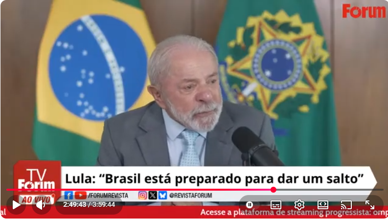 O presidente destacou que o Brasil voltou a crescer após seu retorno ao governo. “A economia brasileira não crescia acima de 3% desde que eu deixei a Presidência em 2010. Só voltou a crescer acima de 3% quando voltei em 2023”, disse.