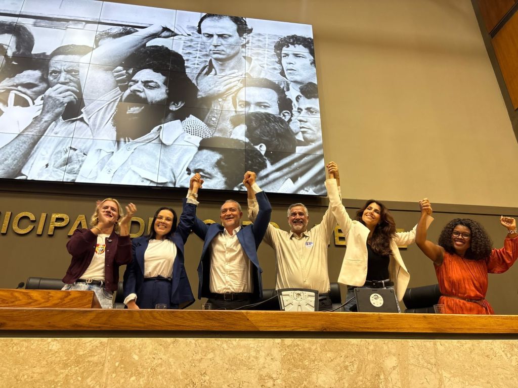 Durante a cerimônia, a vereadora apresentou projeto de lei sobre a Renda Básica de Cidadania, uma das principais bandeiras de Suplicy. Evento marcou primeiro encontro dos pré-candidatos Edegar Pretto e Juliana Brizola após definição da chapa majoritária ao Governo do Estado